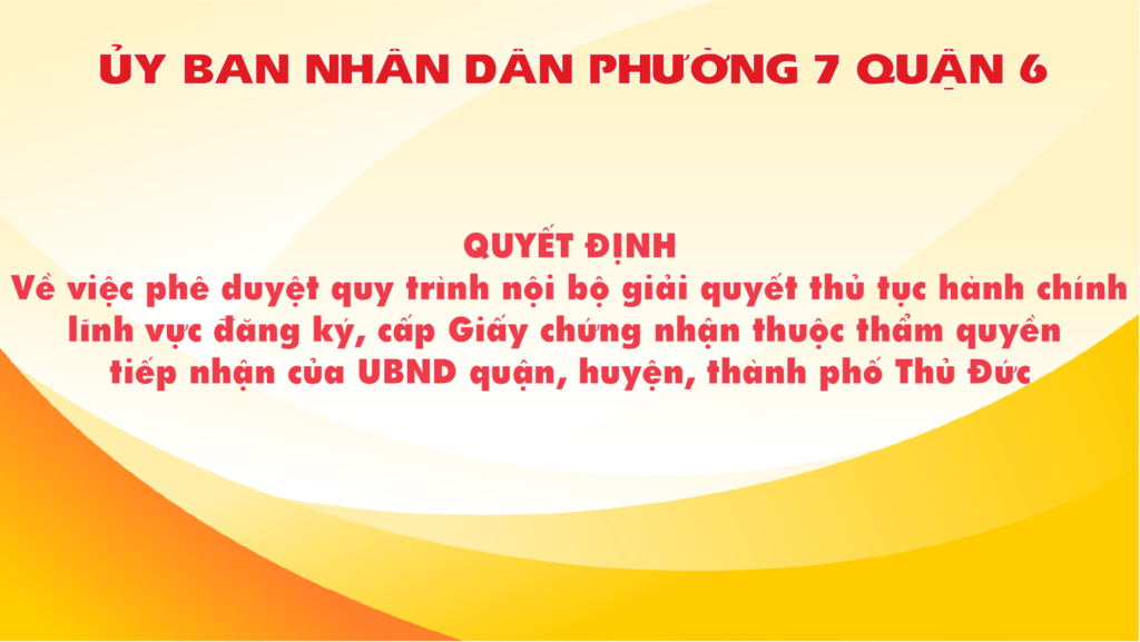 Quyết định về việc phê duyệt quy trình nội bộ giải quyết thủ tục hành chính lĩnh vực đăng ký, cấp Giấy chứng nhận thuộc thẩm quyền tiếp nhận của UBND quận, huyện, thành phố Thủ Đức